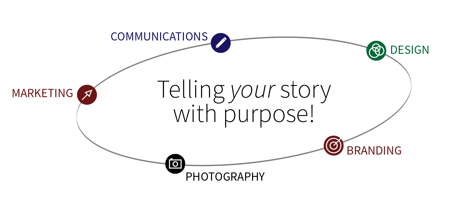 We offer a cohesive blend of marketing, branding, communications, design, and photography that helps businesses and organizations tell their stories with purpose. By uniting strategy, messaging, and visual expression, we create solutions that are thoughtful, consistent, and human-centered — from brand identity and campaigns to written communications and visual storytelling. Choose all-inclusive services or individual services to suit your organization's needs.